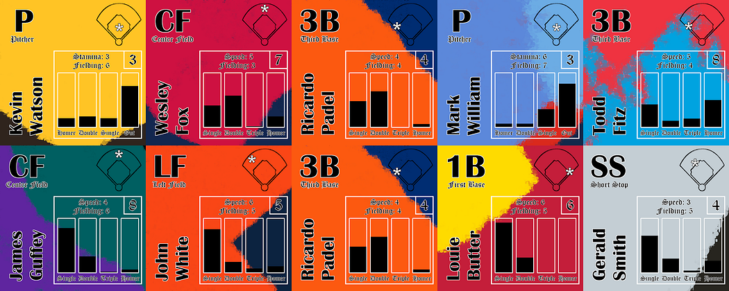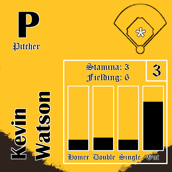 🎨 Pitch Command= 3: Good The most important pitcher property. Determines how likely the pitcher is to gain control of the At-Bat 💪 Stamina = 3: Reliever Determines how long the pitcher can stay in the game 🕸️ Fielding = 6: Above Average How likely or unlikely that player is to commit an error in the field