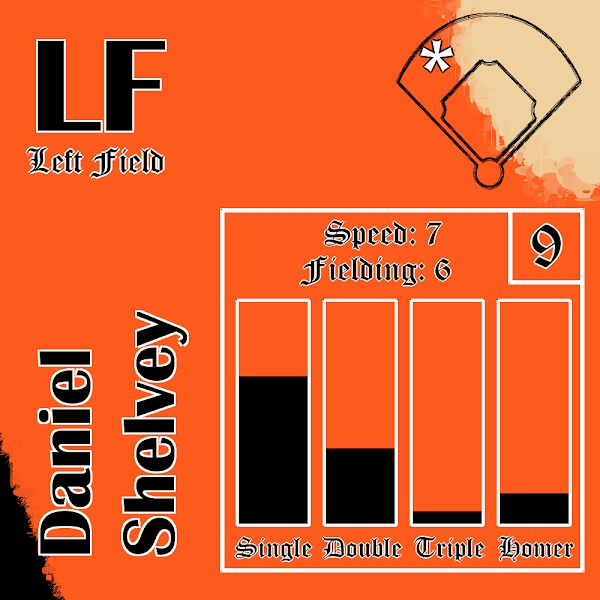 🍴 Plate Discipline = 9: Masterful The most important hitter property. Determines how likely the hitter is to gain control of the At-Bat 👟 Speed = 7: Fast Allows the hitter to sometimes snag an extra base 🕸️ Fielding = 6: Above Average How likely or unlikely that player is to commit an error in the field